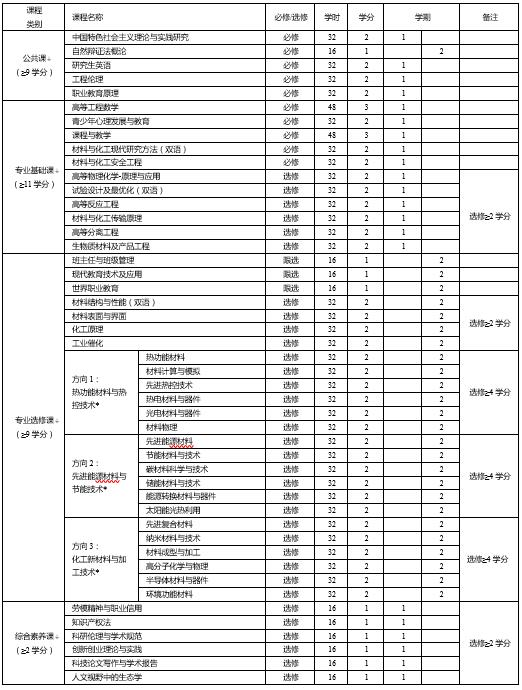 “材料与化工”(职业技术教育方向)硕士专业学位研究生培养方案