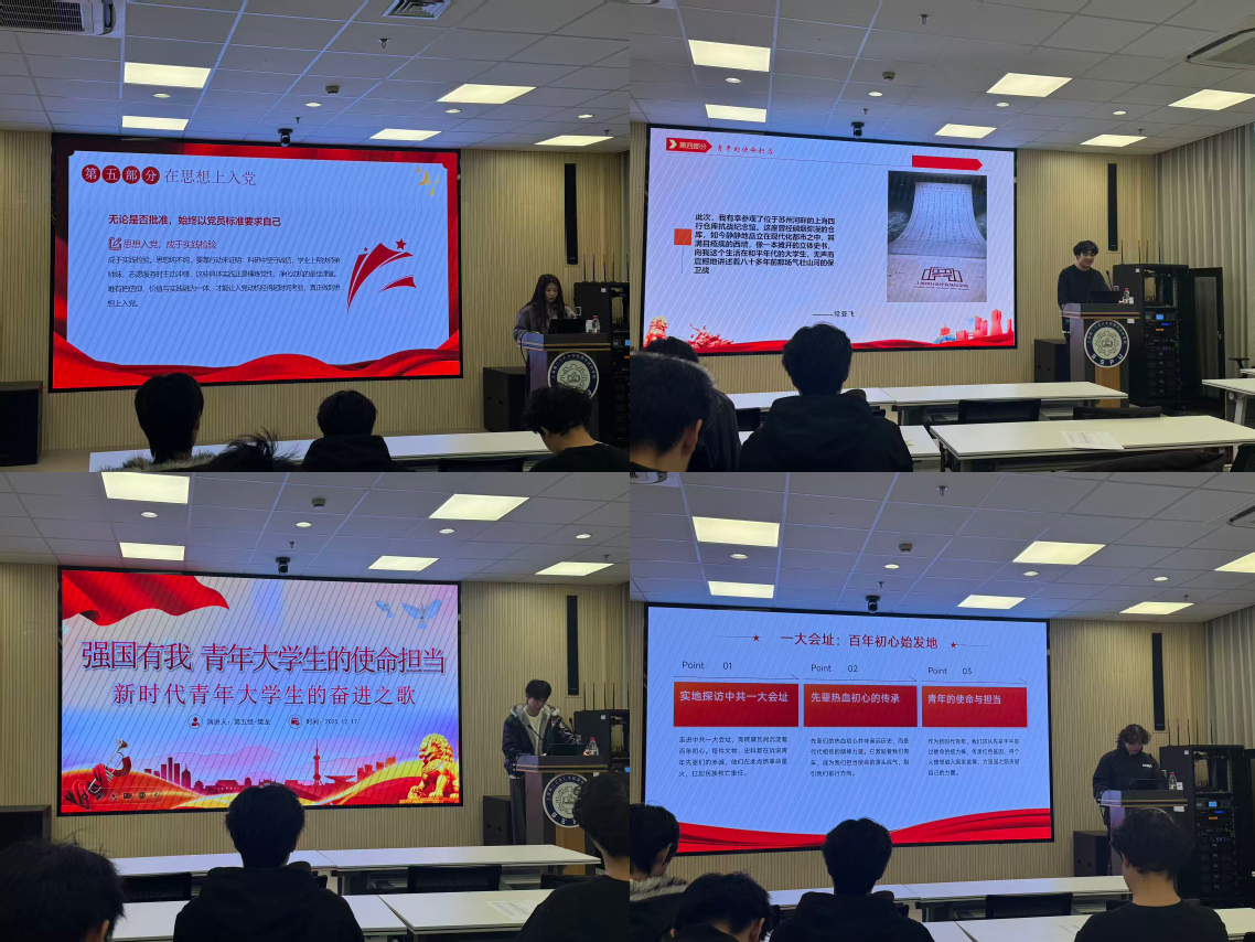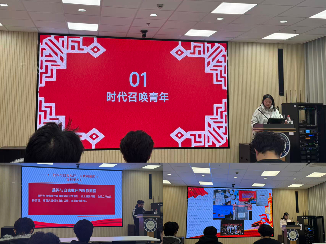 会上,各小组通过PPT展示、案例分享等形式,结合习近平新时代中国特色社会主义思想、党的二十届四中全会精神及国家“双碳”战略,联系专业学习与社会实践,畅谈学习体会。有的聚焦新能源材料研发服务国家战略,有的分享参与志愿服务、乡村振兴调研的经历,生动诠释“全心全意为人民服务”的宗旨。