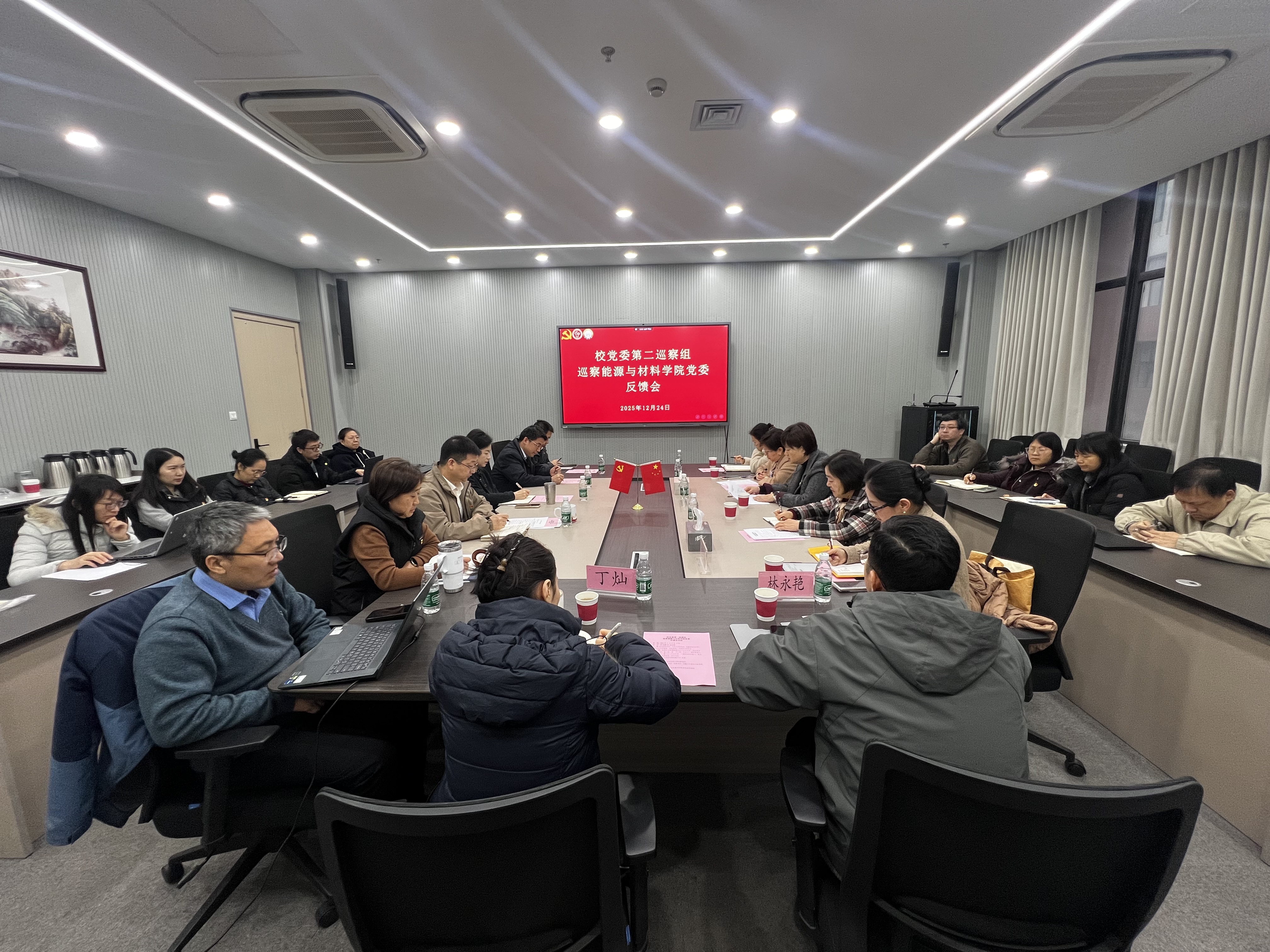 12月24日上午,校党委第二巡察组召开巡察能源与材料学院党委反馈会。校党委副书记、纪委书记、巡察工作领导小组常务副组长翁德玮,巡察组组长汪琴,巡察工作办公室主任席琳琳,第二巡察组全体成员,能源与材料学院领导班子全体成员、师生代表等共同参加了此次会议。会议由学院党委书记陈勇主持。
