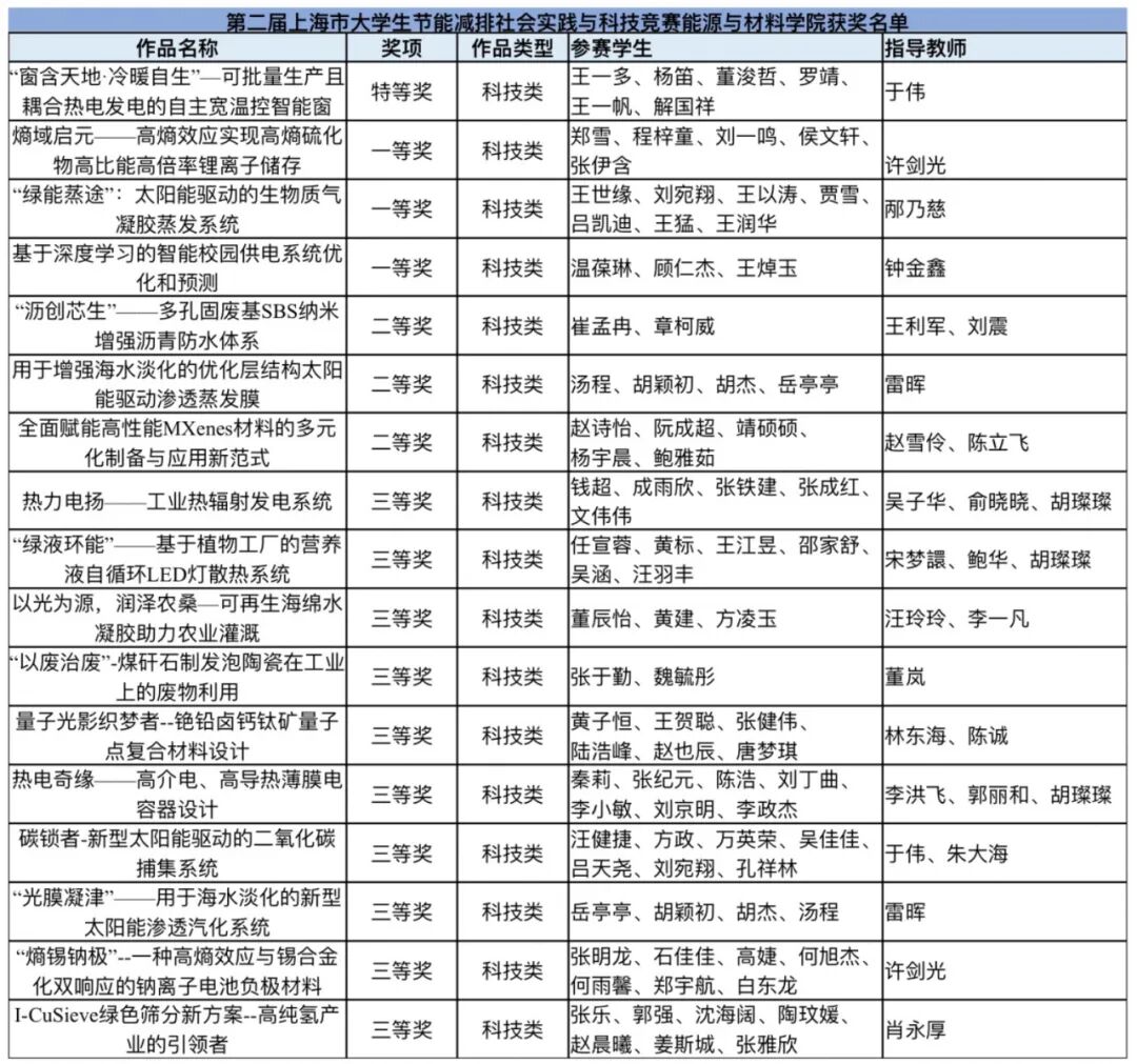 5月10日,第二届上海市大学生节能减排社会实践与科技竞赛(以下简称“大赛”)决赛在我校举行。历经作品初审、专家网评、现场答辩等环节,我院《窗含天地·冷暖自生”—可批量生产且耦合热电发电的自主宽温控智能窗》等17个项目从120项入围决赛的作品中脱颖而出,获得特等奖1项、一等奖3项、二等奖3项、三等奖10项。