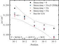 This research innovatively combines the transient current analysis technique with the Raman spectrum measurement method to realize the multi-dimensional localization observation of the trap time and space inside the device (see Fig. 2). It is found that under the off-state stress at high temperature (363 K) and high frequency (1 MHz), four different types of trap states in the device exhibit different responses, The interface trap states whose time constant is on the order of microsecond increase remarkably, while the surface trap states show abnormal instability. The team further determined the energy levels and spatial distribution of each trap state through temperature and voltage varying experiments and Arrhenius fitting analysis. It is observed that the intensity and time constant of the deep level trap state near the grid interface do not change with temperature, showing the trend of microcrack evolution. In addition, that study also observe the pre-filling phenomenon of the surface state traps unde the stress-free condition for the first time, which is the trap state effect with the equivalent energy level of 0.716 eV, resulting in the continuous decrease of the on-current of the device, And affect its dynamic response characteristics.