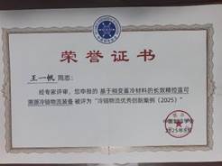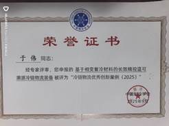 This honor is not only the recognition of the innovation of the project, but also the full recognition of the team's scientific research ability and the application value of the results. The project leader, Professor Yu Wei, graduate student Wang Yifan and other project members played an important role in the R & D and implementation process, and led the team to break through the bottleneck of traditional cold chain equipment in temperature control, stability and energy efficiency. The technical scheme with characteristics of long-term effect, energy saving and traceability is put forward.